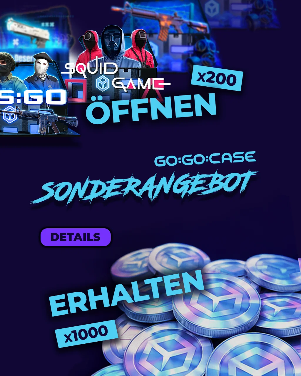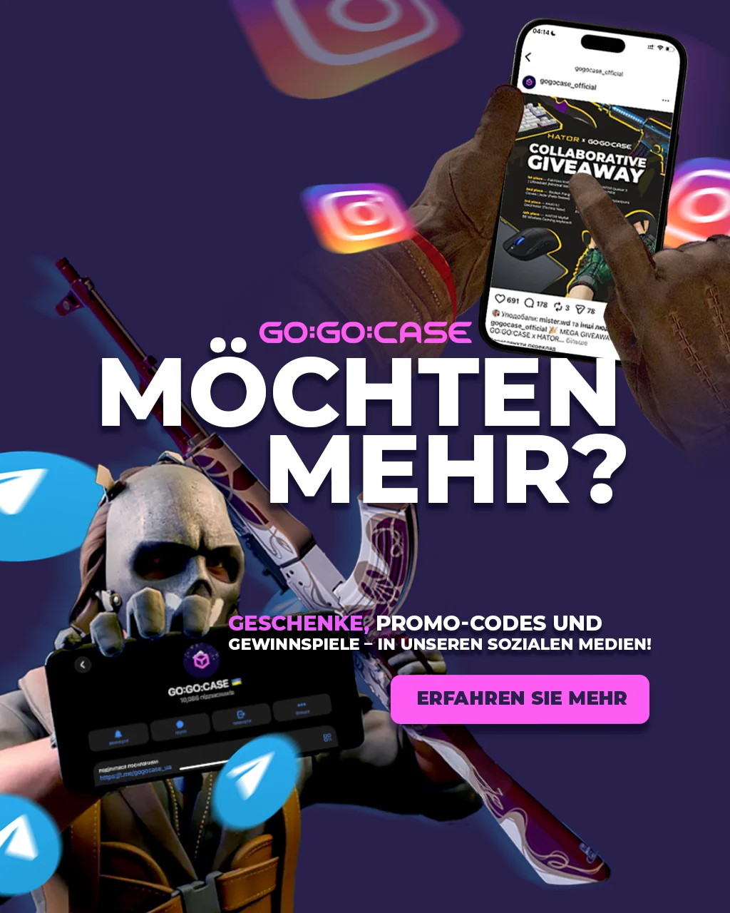 Weitere Bonusse finden Sie in den sozialen Medien von GO:GO:CASE